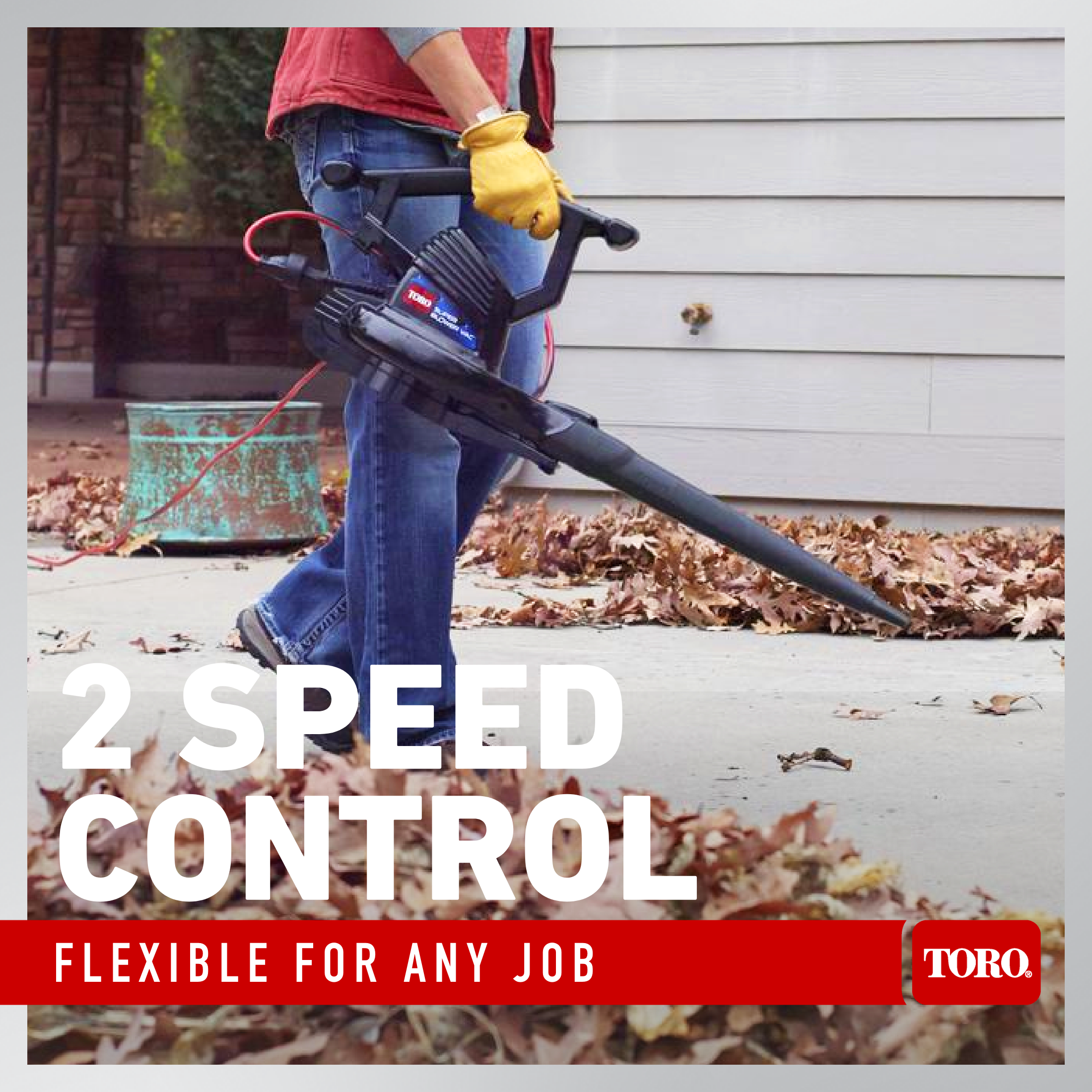 The Toro Power Sweep™ is the perfect blower for clearing leaves and debris from sidewalks, decks and driveways. This blower has a 2-speed motor and generates air force of 160 mph and is very lightweight – only 4.6 pounds. Covered by a 2-year full warranty.