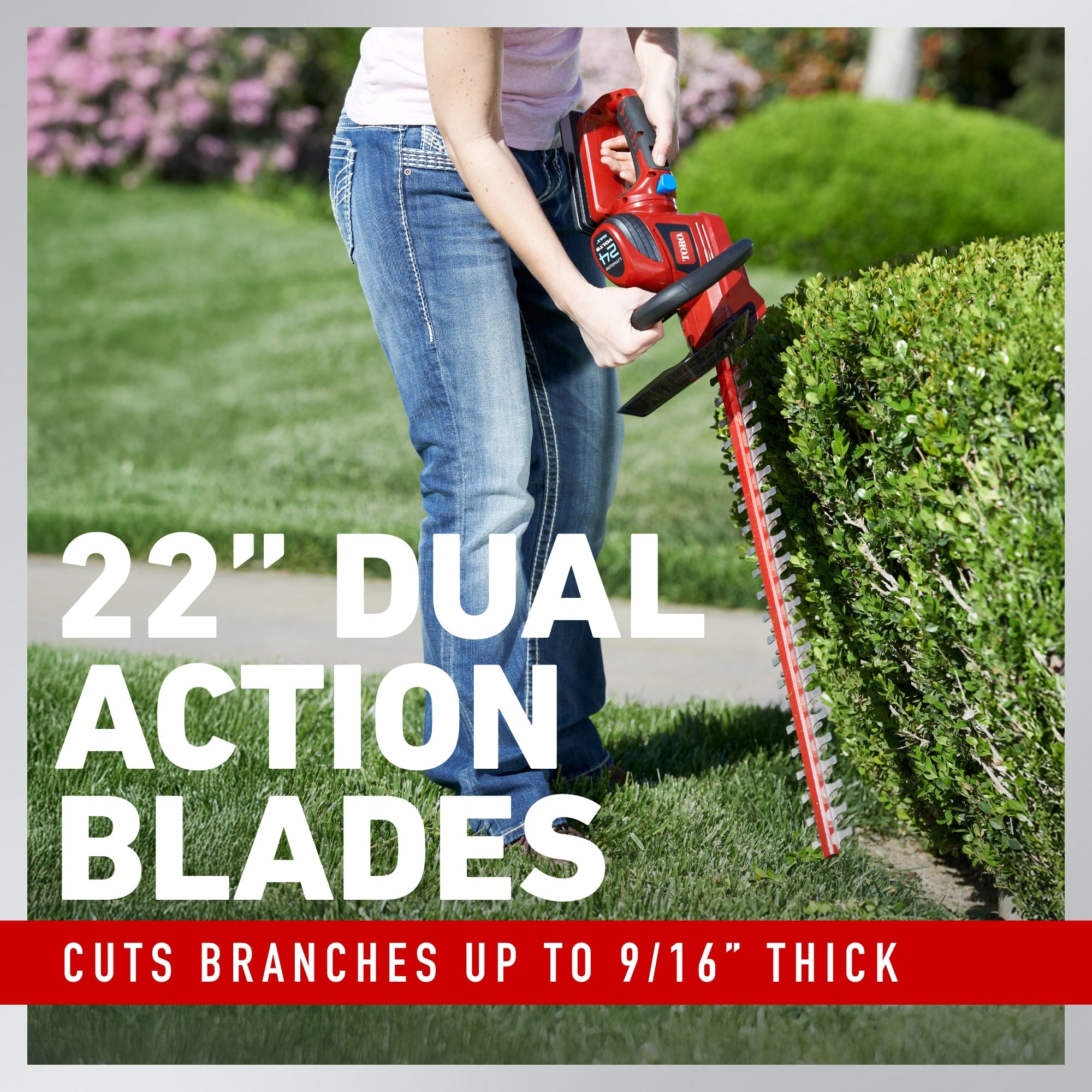 Toro’s 20V max new hedge trimmers with high-performing features make yard care seem effortless. The ergonomic handle rotates 90 degrees in each direction providing superior ease of use and accessibility when trimming vertically. The powerful 20V Lithium-ion battery is lightweight and compact but delivers the power to get the job done right. Battery manufacturer rating; 20V maximum & 18V nominal. Actual voltage varies with load.