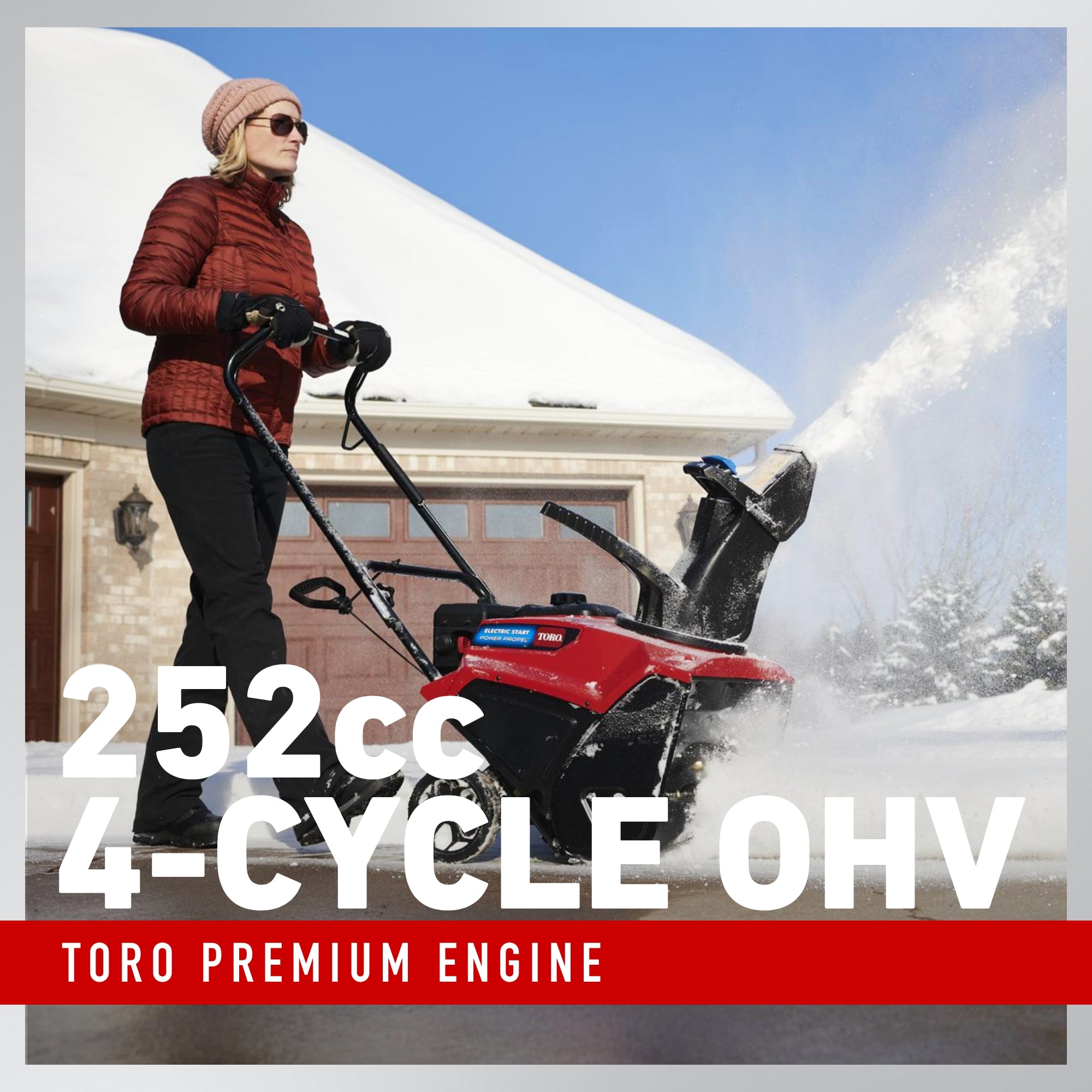 Big snow chores are never fun, but with the Toro Power Clear® 821 R-C makes quick work of winter’s wrath. You’ll slice through the snow with Toro’s powerful 252cc 4-cycle OHV engine, and your muscles will thank you for the ergonomic and enhanced handle, and expanded life paddles. Stay on the move without constant stops and starts with Toro’s Power Propel® technology. And rest easy knowing that Toro stands behind its products with a 2-year full warranty. Count on it.Fold-down handle and chute make storage or transport simple. Storage dimensions: 33 in. x 21 in. x 34 in. (84 cm x 54 cm x 87 cm). Backed by Toro’s Two-Year Full Warranty and Two-Year Guaranteed to Start Warranty (Residential only) or 1-Year Limited Warranty (Commercial) (No GTS Warranty for Commercial Use).Choose the right fuelfor your snowblower. For best starting results use Non-ethanol fuel with an octane rating of 87 or higher. Use fresh fuel less than 30 days old, add fuel stabilizer to reduce starting problems. Do not mix oil with gas. For more information, view ourFuel Fact Tips.